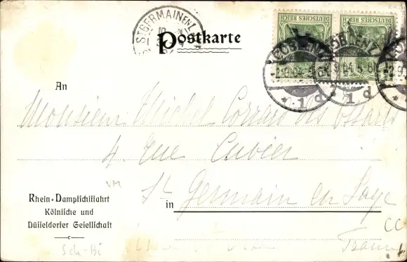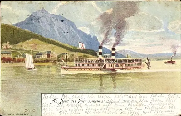 Künstler Litho Dampfer auf dem Rhein, Segelboot