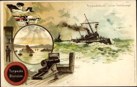 Künstler Litho Deutsches Kriegsschiff, Torpedoboote unter Volldampf, Kaiserliche Marine