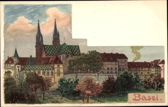 Künstler Litho Dussault, Bâle Basel Stadt Schweiz, Stadtansicht, Kirche