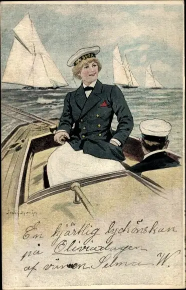 Künstler Litho Frau in Matrosenuniform, Segelpartie