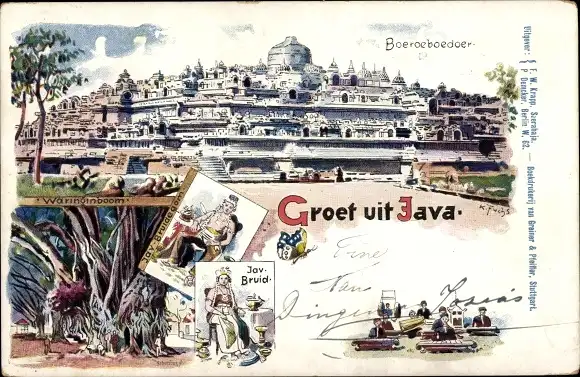 Künstler Litho Fuchs, Karl, Java Indonesien, Stadtansicht, Baum