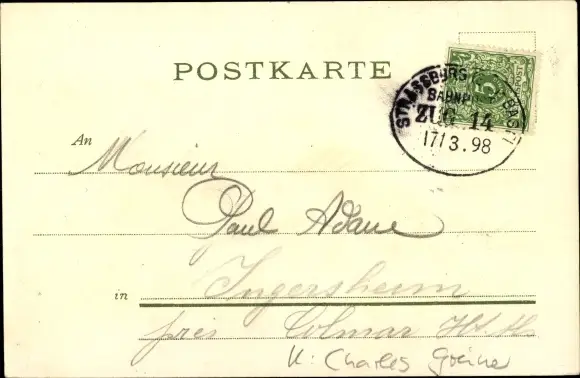 Zustand, siehe Scan, gelaufen, 1898 - ca 14 cm X 9 cm