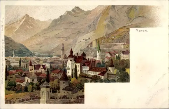 Künstler Litho Hirschmann, Meran Merano Südtirol, Totalansicht der Ortschaft