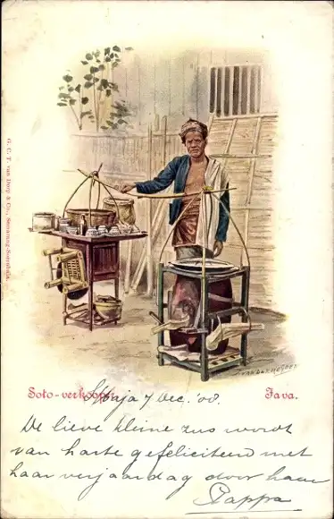 Künstler Litho Java Indonesien, soto verkooper