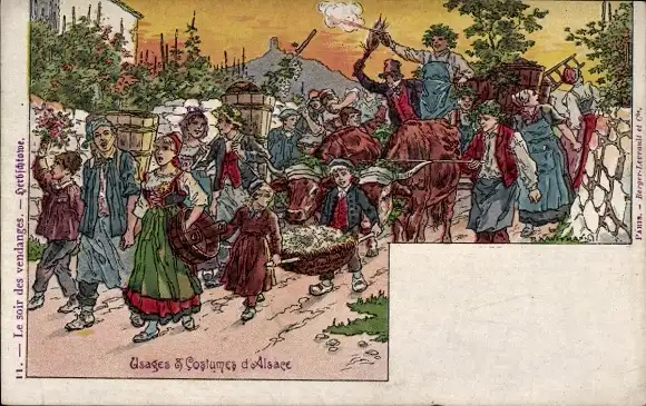 Künstler Litho Kauffmann, P., Elsässer Trachten
