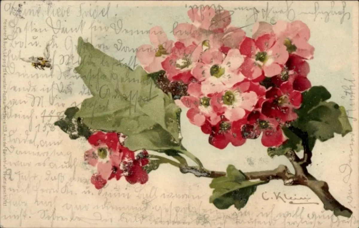 Künstler Litho Klein, C., Blühender Zweig, Biene