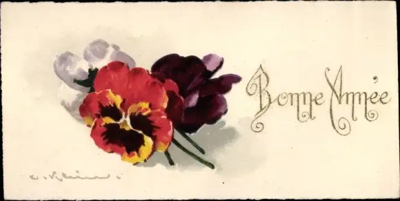 Künstler Litho Klein, C., Glückwunsch Neujahr, Stiefmütterchen