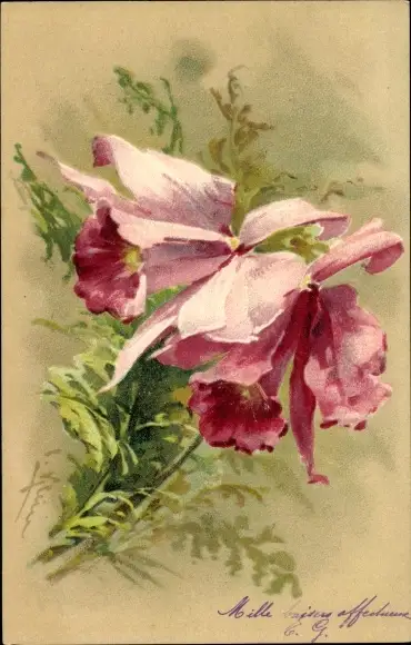 Künstler Litho Klein, C., Pinke Blumen