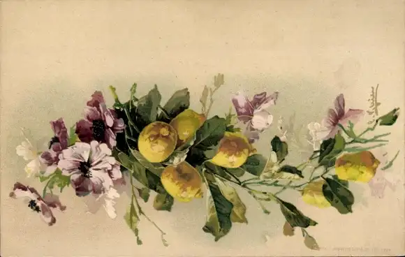 Künstler Litho Klein, Catharina, Früchte, Zitronen, Blumen