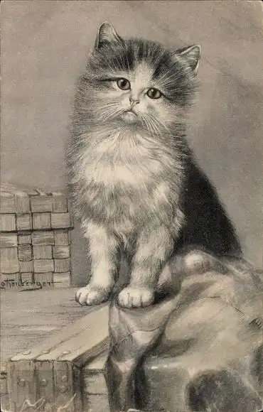 Künstler Litho Kleine Katze, Tierporträt, Kätzchen