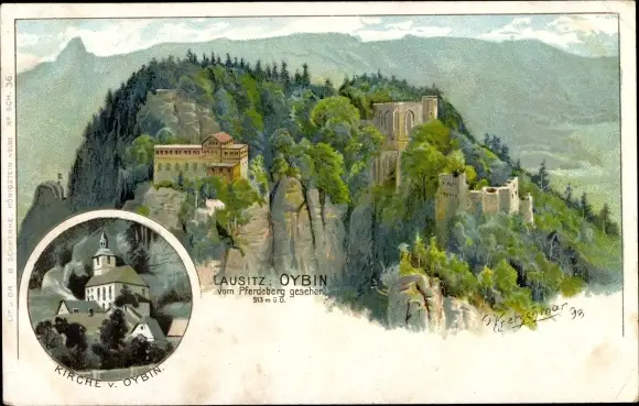 Künstler Litho Kretschmar, O., Oybin in der Oberlausitz, Berg Oybin, Kirche