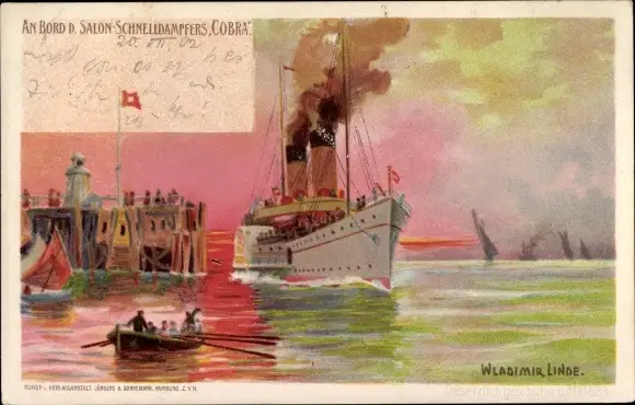 Künstler Litho Linde, Wladimir, Dampfer Cobra, HAPAG Seebäderdienst