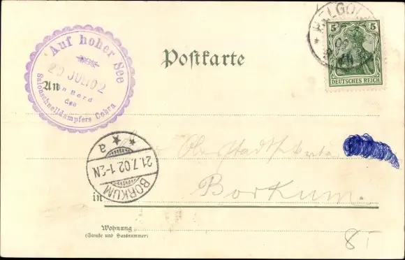 Zustand, siehe Scan, gelaufen, 1902 - ca 14 cm X 9 cm