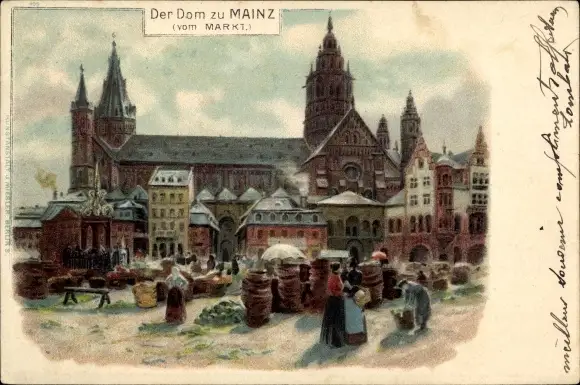 Künstler Litho Mainz am Rhein, Dom, Markt