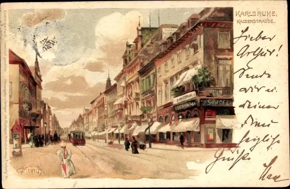 Künstler Litho Münch, C., Karlsruhe in Baden Württemberg, Partie in der Kaiserstraße, Spiegel