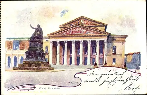 Künstler Litho Mütz, R., München, Königl. Hoftheater, Denkmal