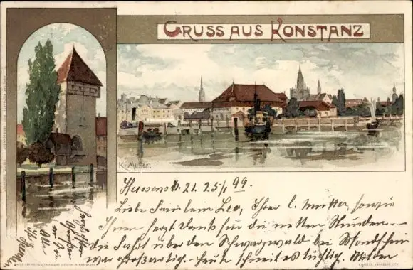 Künstler Litho Mutter, K., Konstanz am Bodensee, Stadtansicht, Turm
