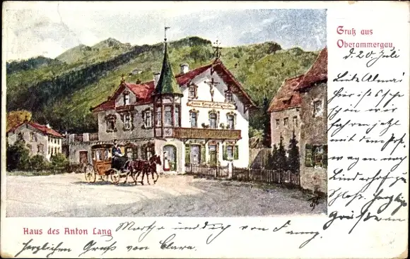 Künstler Litho Oberammergau in Oberbayern, Haus des Anton Lang
