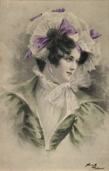 Künstler Litho Portrait einer jungen Frau, Kopfschmuck, Munk