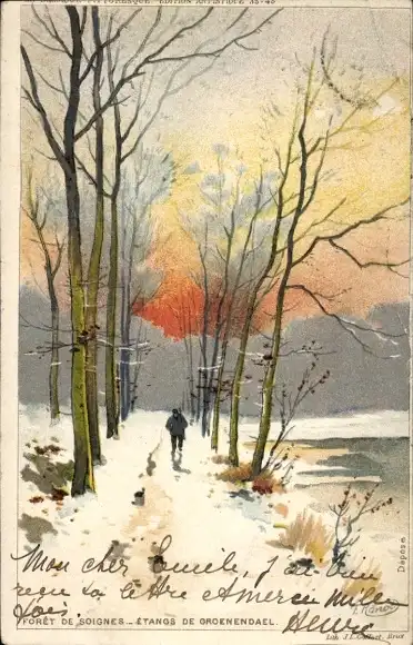 Künstler Litho Ranot, F., Waterloo Wallonien Wallonisch Brabant, Etang de Groenendael
