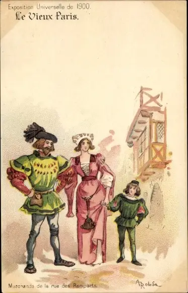 Künstler Litho Robida, A., Paris, Exposition Universelle de 1900, Marchands de la rue des Remparts