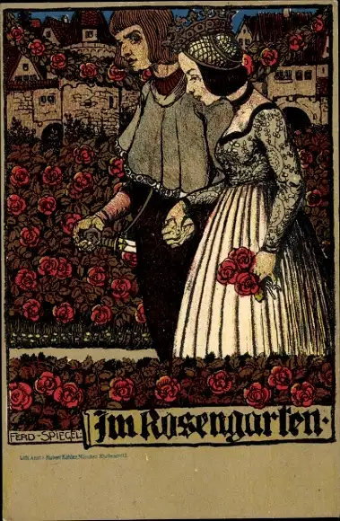 Künstler Litho Spiegel, Ferdinand, Rosengarten, Paar