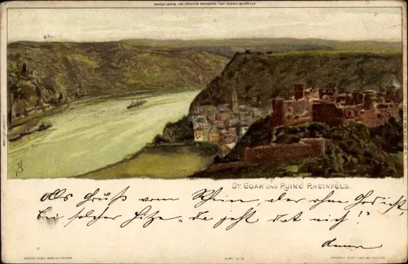 Künstler Litho St. Goar am Rhein, Burg Rheinfels, Ruine Rheinfels