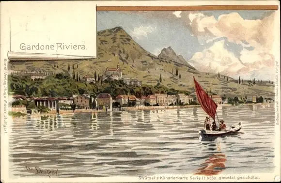 Künstler Litho Strützel, O., Gardone Riviera Lombardia, Segelpartie