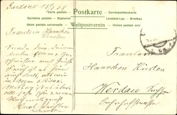 Zustand, siehe Scan, gelaufen, 1908 - ca 14 cm X 9 cm