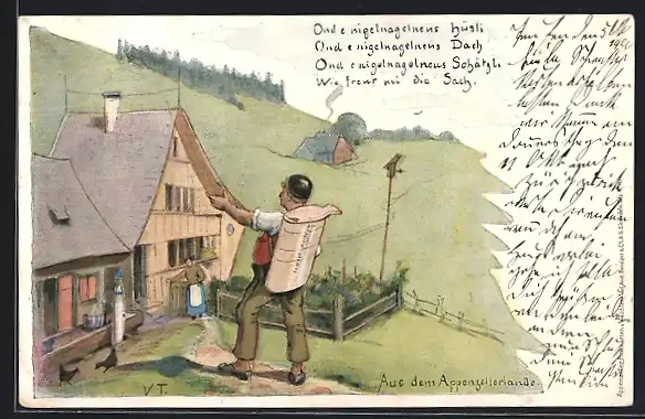 Künstler-Lithographie Appenzellerland, Schweizer kehrt heim zu seiner Frau