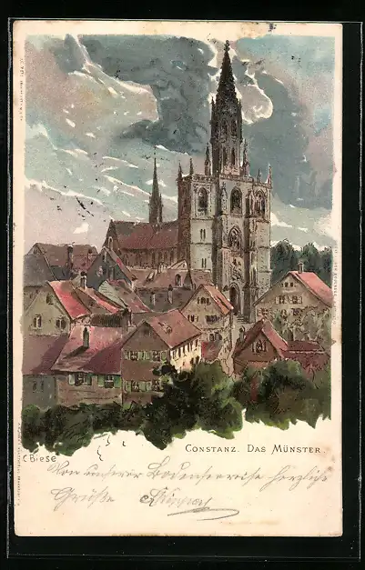 Künstler-Lithographie C.Biese: Constanz, Das Münster
