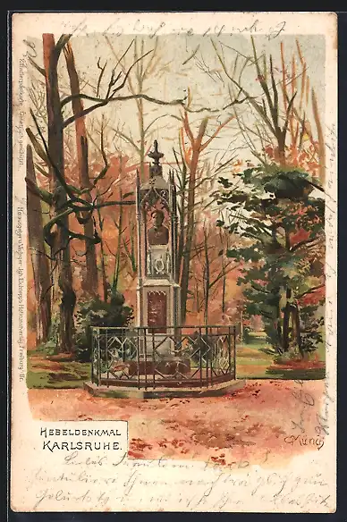 Künstler-Lithographie Carl Münch: Karlsruhe, Hebeldenkmal