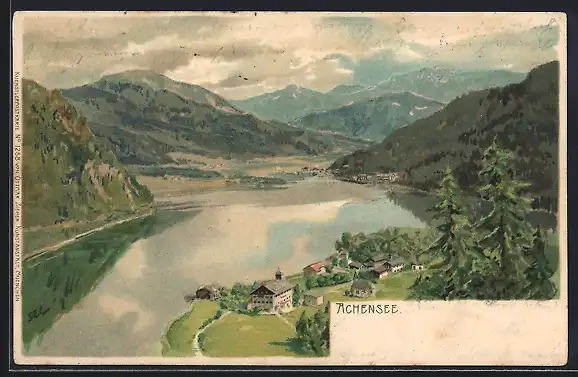 Künstler-Lithographie Edward Theodore Compton: Achensee, Panorama