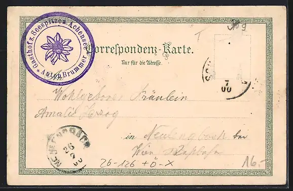 gelaufen 1900, Briefmarke entfernt, Eckknick unten re., guter Zustand