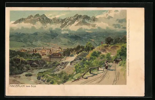Künstler-Lithographie Edward Theodore Compton: Innsbruck, von Süd
