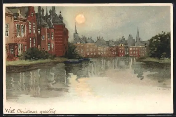 Künstler-Lithographie Henri Cassiers: La Haye, Partie aus dem Ort