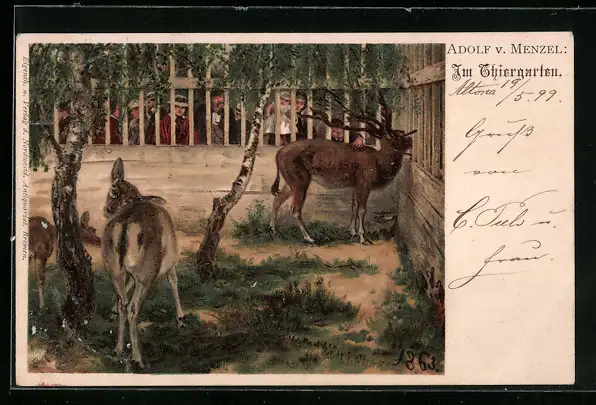 Künstler-Lithographie Im Thiergarten, Antilopen