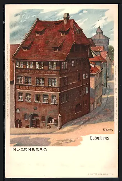 Künstler-Lithographie Karl Mutter: Nuernberg, Duererhaus