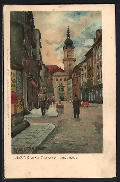 Künstler-Lithographie Raoul Frank: Linz, Altstadt, Landhaus