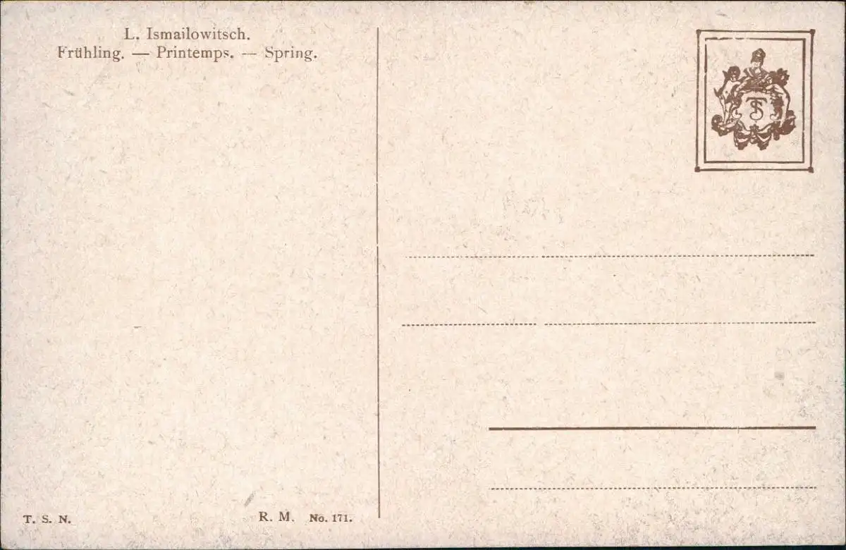 Künstlerkarte: Gemälde Frühling. L. Ismailowitsch. Liebe Erotik 1913