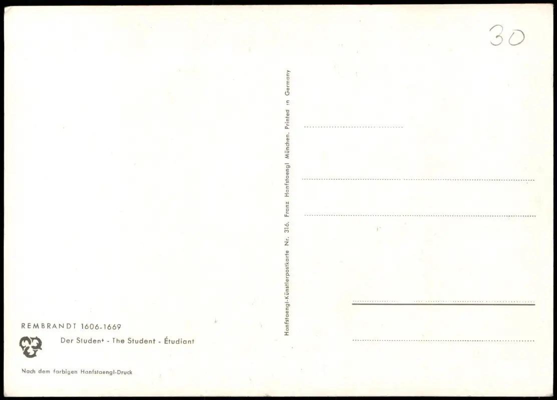 Name: Künstlerkarte REMBRANDT Der Student The Student Étudiant