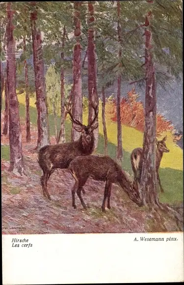 Küsntler Ak Wesemann, A, Hirsche am Waldrand