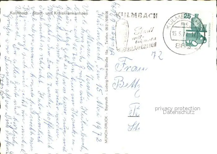 Kulmbach Krankenhaus Kulmbach postalisch gelaufen 1972 Erhaltung siehe scans Alte Ansichtskarte Postkarte NataID47