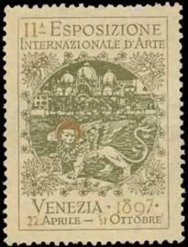 Esposizione internationale d'Arte, Löwe, Größe/Zustand: 4x3 , guter Zustand, Original alte Reklamemarke die seinerzeit für die Werbung benutzt wurde