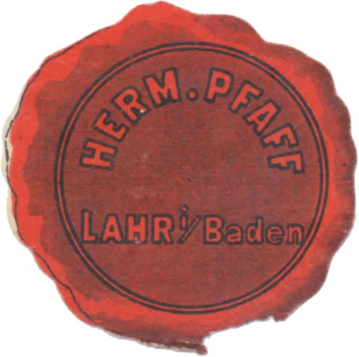 Herm. Pfaff , Größe/Zustand: 3 , beschädigt, Original alte Reklamemarke die seinerzeit für die Werbung benutzt wurde