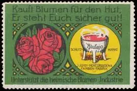 Kauft Blumen für den Hut, er steht Euch sicher gut. Unterstützt die heimische Blumen-Industrie. , Größe/Zustand: 4x6 , guter Zustand, Original alte Reklamemarke die seinerzeit für die Werbung benutzt wurde