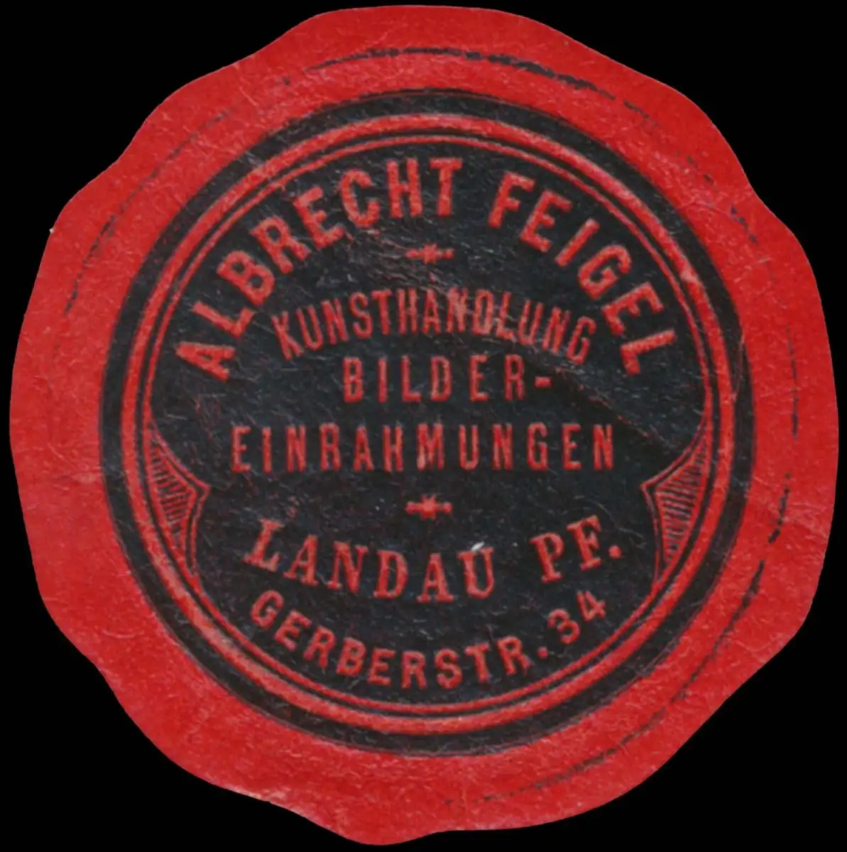 Bildereinrahmungen, Gerberstraße 34, Größe/Zustand: 4 , leicht beschädigt, Original alte Reklamemarke die seinerzeit für die Werbung benutzt wurde