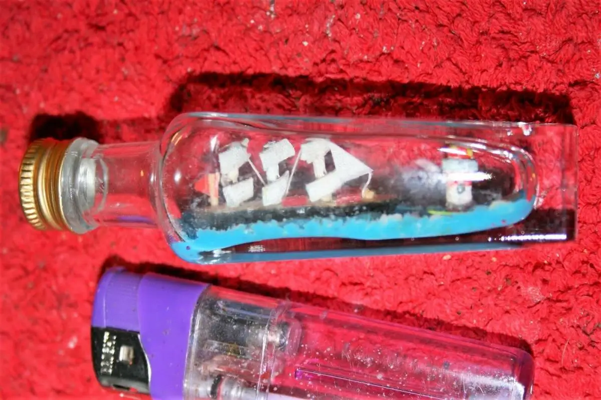 Kunstwerk in einer kleinen Kümmerlingflasche