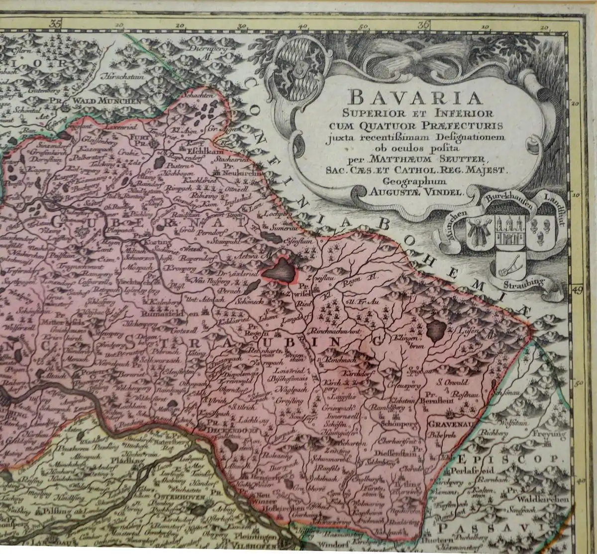Bavaria Superior et Inferior cum Quatuor Praefecturis juxta recentissimam Designationem ob oculus posita per Matthaeum Seutter, Sac. Caes. et Cathol. Reg. Majest. Geographum Augustae Vindel.