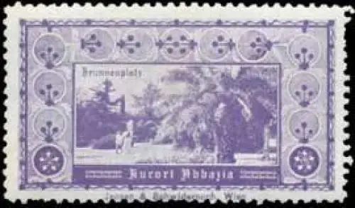 Brunnenplatz. Die österreichische Riviera, Winterkurort und Seebad Abbazia, Größe/Zustand: 3x5 , guter Zustand, Original alte Reklamemarke die seinerzeit für die Werbung benutzt wurde
